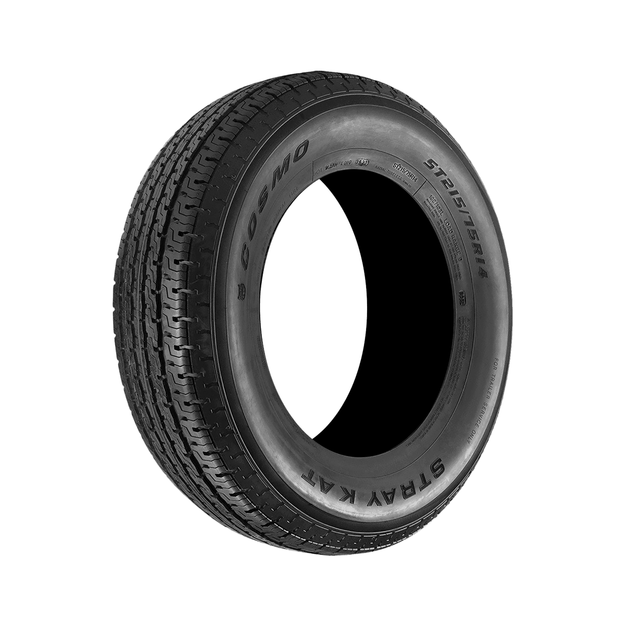 The Cosmo Stray Kat I is a commercial, overbuilt trailer tire designed for excellent performance under challenging conditions. It features a low-rolling resistance tread that enhances mileage, stability, and traction. The Stray Kat I also utilizes Ultimate Tire Technology and Quiet KAT Technology, making it compatible with electric vehicles (EVs).